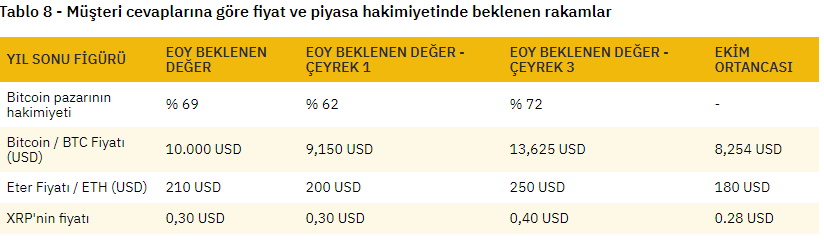 Ayrıca, kurumsal ve VIP müşteriler Bitcoin’in 2019’un sonunda altcoin piyasalarına yönelik piyasa hakimiyetini yüzde 69 oranında sürdürmesini bekliyor.