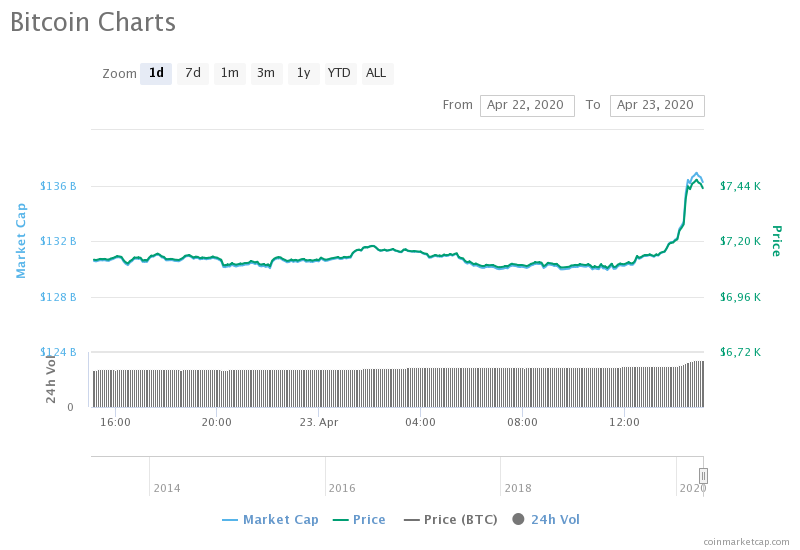 Bitcoin birkaç dakika içinde 7.100 dolar seviyelerinden 7.800 dolar seviyelerine çıkarak son üç haftada en yüksek seviyesine ulaştı. 7.250 ve 7.500 dolarlık engelleri rahat aşan BTC, 6 Nisan’dan bu yana oluşan psikolojik engeli kırdı.