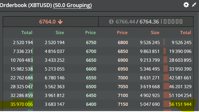 BitMEX’teki Bitcoin vadeli işlem sözleşmesinin sipariş defteri, alıcılar ve satıcılar arasında büyük bir dengesizlik olduğunu gösteriyor ve satıcılar açıkça piyasa üzerinde sıkı bir kontrol sağlıyor. Kısaca, Bitmex’te alıcılar ve satıcılar arasındaki büyük dengesizlikler, 7.000 doların kırılması zor bir duruma getiriyor.