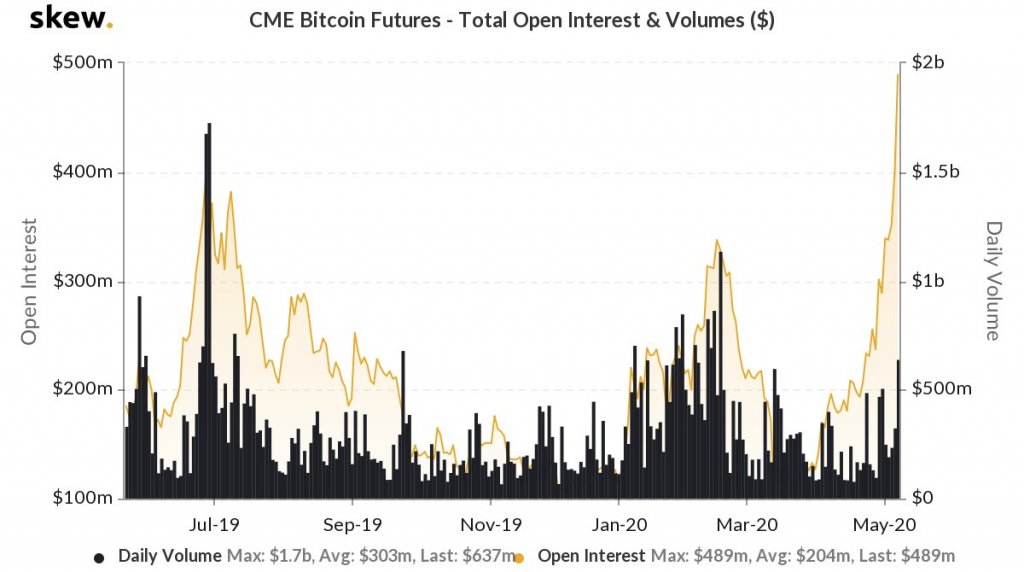 Skew verilerine göre, geçtiğimiz iki ay boyunca Bitcoin vadeli işlemlerine yönelik CME’ye açık ilgi patladı ve geçtiğimiz hafta tüm zamanların en yüksek seviyesi olan 2 milyar dolara ulaştı.
