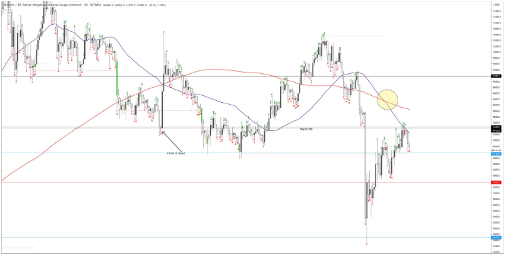 Aşağıdaki grafiği paylaşan popüler bir kripto trader’ı, Bitcoin’in muhtemelen oluşan ölüm haçı (death cross) sebebiyle “güçlü satış sinyalini” verdiğini ve TD Sıralamasının (Tom Demark Sıralaması) kırmızı 2 mum bastığını söyledi. Analist, bu göstergeler nedeniyle Bitcoin’in düşüş eğiliminin eşiğinde olduğunu belirtti.