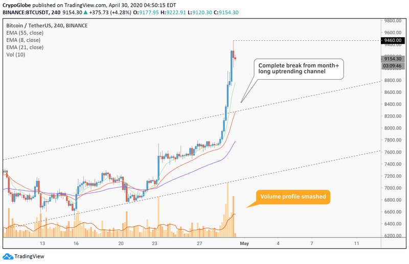 Hacim profili de burada kırıldı ve Mart ve Nisan ayının sonlarındaki cansız fiyat hareketine net bir son verdi. Bitcoin kısa vadede oldukça fazla satın alındığı hesaba katıldığında, burada bir geri çekilme bekleyebiliriz.