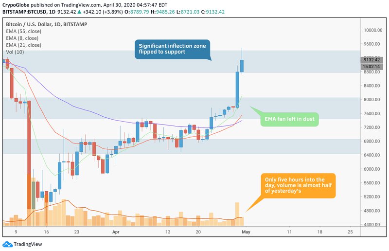 Günlük hareketle, Bitcoin’in tam olarak alınmadığı takdirde bir sonraki bükülme bölgesini devreye soktuğunu görüyoruz. EMA’lar tamamen geride bırakıldı, bu da dikkatli olmamıza işaret ediyor.