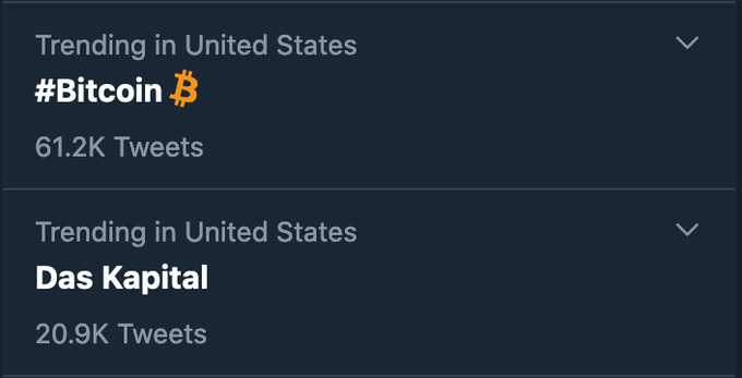 Önde gelen kripto para biriminin altında, Karl Marx’ın kitabı Das Kapital bulunuyor ki Tesla CEO’su Elon Musk, daha önce Marx ild ilgili bir tweet paylaşmıştı.