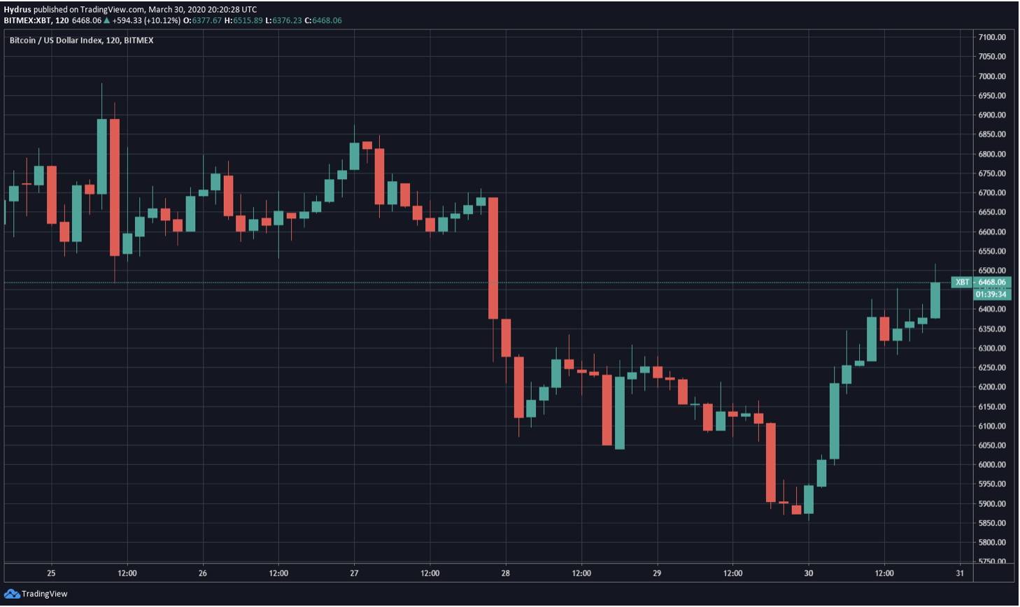 Özellikle son 30 dakika içerisinde Bitcoin (BTC), 6.500 dolar seviyesinin üzerine çıktı. Pazar akşamı 5.800 dolar seviyesinden işlem gören lider kripto varlık yaklaşık %12’lik bir değer kazandı.
