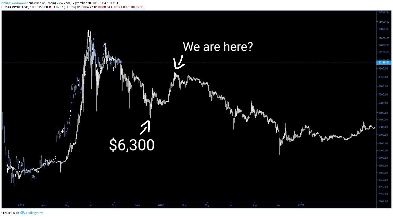 NebraskanGooner, Bitcoin’in fiyatının 25 Eylül’de yüzde 20’den fazla düşmesinden hemen önce, 20 Eylül’de bu iki zaman dönemini karşılaştıran fraktal analizini yayınlamıştı. Analizdeki gibi Bitcoin 6.000 doların altına düşmese de (dip 6.400 dolardı) bu grafiği takip edenler en büyük kripto paranın 2019’un dördüncü çeyreğindeki fiyat hareketlerini doğru bir şekilde tahmin edebilme şansı buldular.