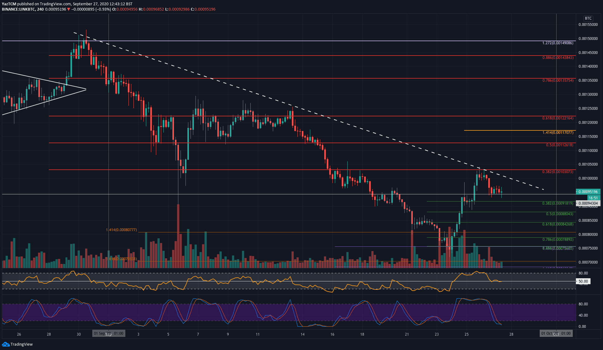 LINK/BTC – Bitcoin’e Karşı LINK İçin Benzer Direnç Görünüyor