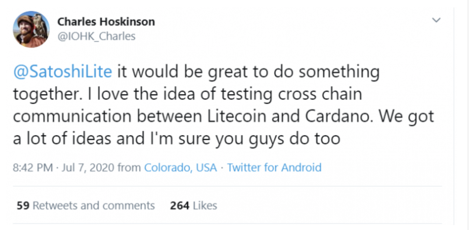 IOHK CEO’su ve Cardano’nun (ADA) kurucu ortağı Charles Hoskinson, Twitter üzerinden yaptığı bir paylaşım ile, Litecoin’in (LTC) yaratıcısı Charlie Lee’ye iş birliği teklifinde bulundu.
