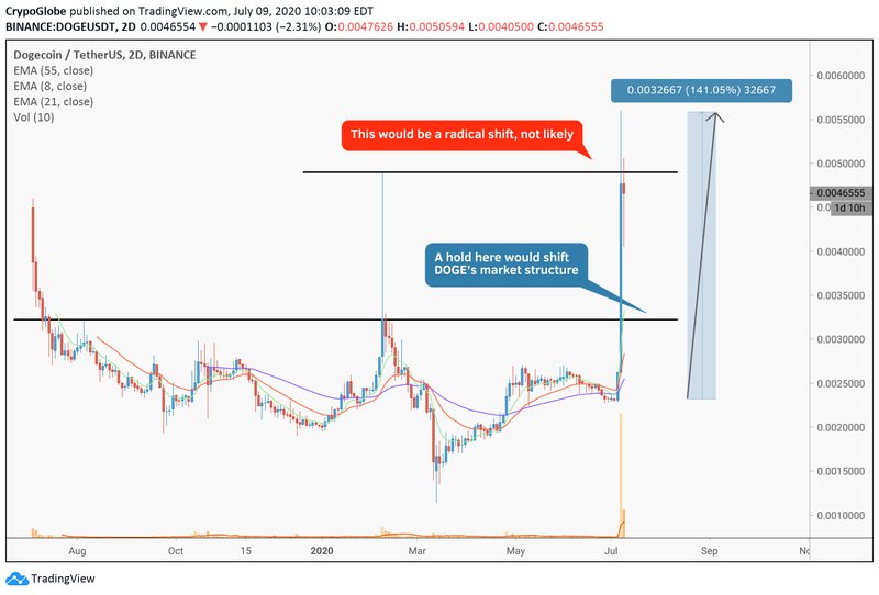 Bu seviye çok zor olacak gibi görünmüyor. Daha önce 0,0045 dolar ve üstü gibi çok daha etkileyici yerlerde destekler görülmüştü.