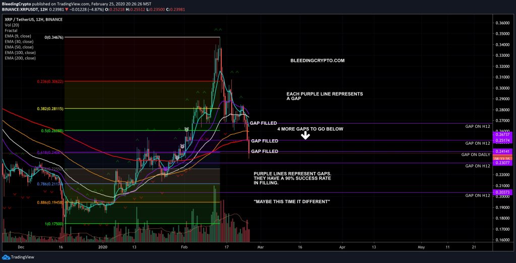 XRP’ye gelince, yine Twitter’daki popüler kripto para analistlerinden Bleeding Crypto, XRP’nin 0,20 dolar seviyesine kadar geri çekilebileceğini söyledi. Analist, bu düşüşün sebebi olarak vadeli işlemlerde oluşan boşlukları gösteriyor.