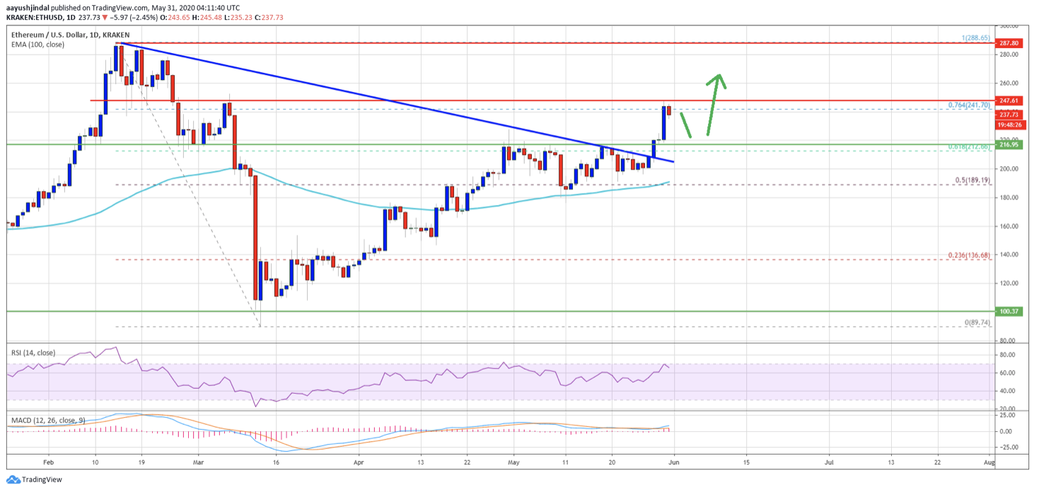 Ethereum (ETH) bugün ABD doları karşısında 236 dolar seviyesinden işlem görüyor. Ethereum 248 dolarlık direnç bölgesini geçerse, 285-300 dolar seviyesini görmesi muhtemel görülüyor.