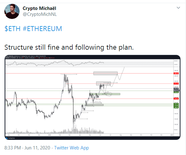 Tecrübeli kripto para trader’ı Michael van de Poppe, Ağustos 2020’de Ethereum (ETH) fiyatının 300 doların üzerine çıkacağını tahmin eden son grafiğini güncelledi.