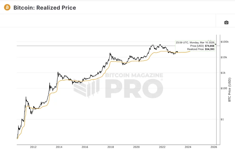 Realized Price: yaklaşık 54.400 dolar. Tüm Bitcoin yatırımcılarının ortalama alım maliyeti. Tarihsel olarak bu seviyenin altına kalıcı inmek çok zorlu dönemlerde bile nadiren gerçekleşti ve her seferinde güçlü bir dip bölgesi oldu.