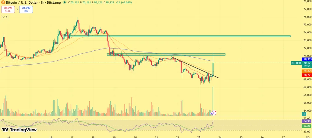 Bu gelişmelerle birlikte Bitcoin, kısa vadeli düşen trendini aşarak 71.000 doların üzerine çıktı. Ethereum ise 2.150 dolar seviyesine ulaştı. Kripto piyasasında dikkat çeken bir diğer hareket ise XRP’de görüldü; XRP fiyatı 1,41 dolara kadar tırmandı.